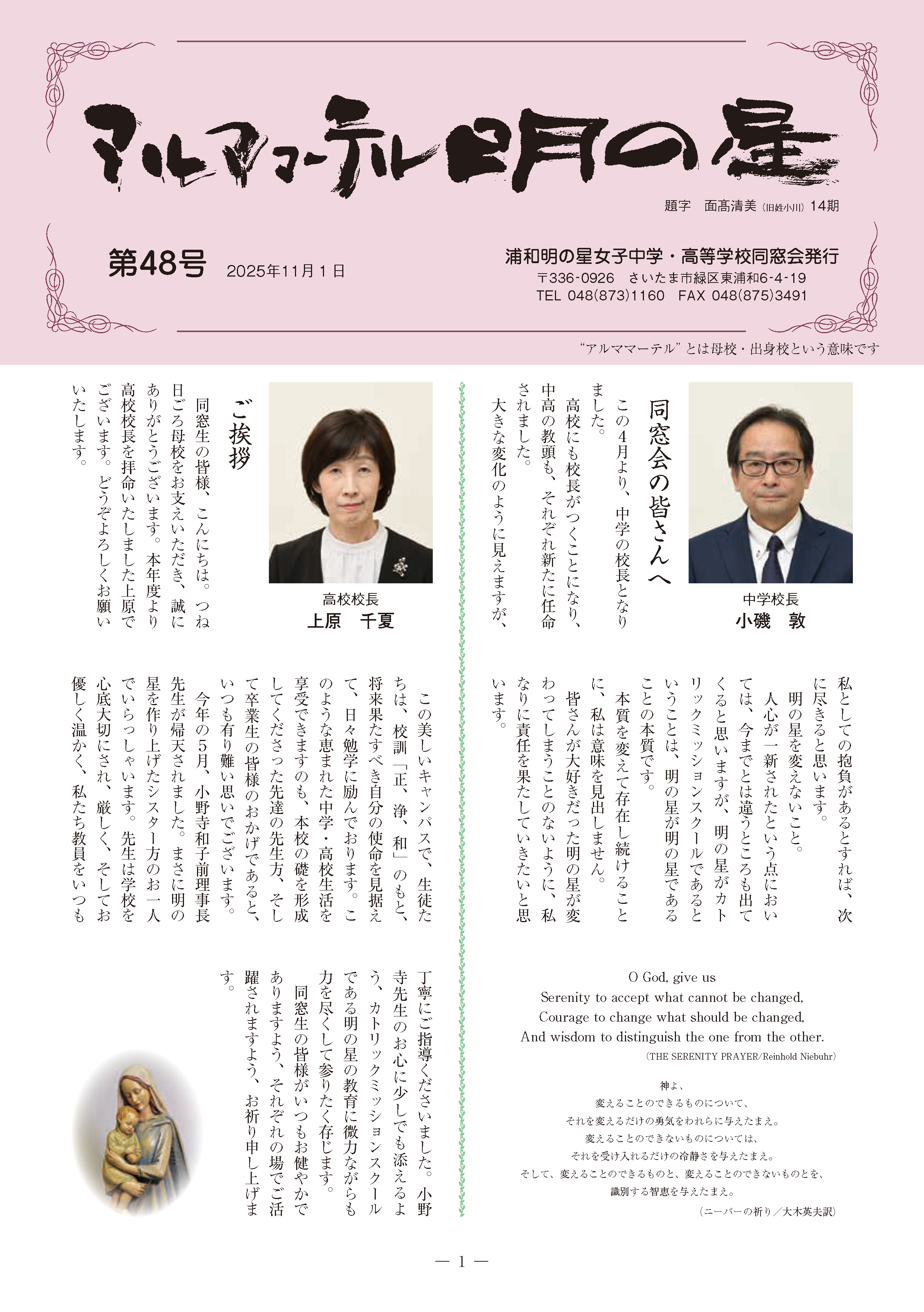 年月の経過は早く、本年、浦和明の星女子中学・高等学校 同窓会 及び 後援会は創立50周年を迎えました。